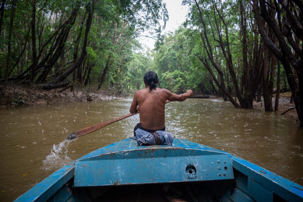 As I step off the boat, barefoot, I hold my camera and laptop above the water to keep them dry. I meet Elisvan, my guide for the upcoming days. Elisvan is cutting a path through the dense greenery with a machete, and I follow closely behind. We’re on our way to the community, were several indigenous groups living together deep in the Amazon. Here, traditions are upheld that have been passed down from generation to generation for centuries. But how much longer will that last?